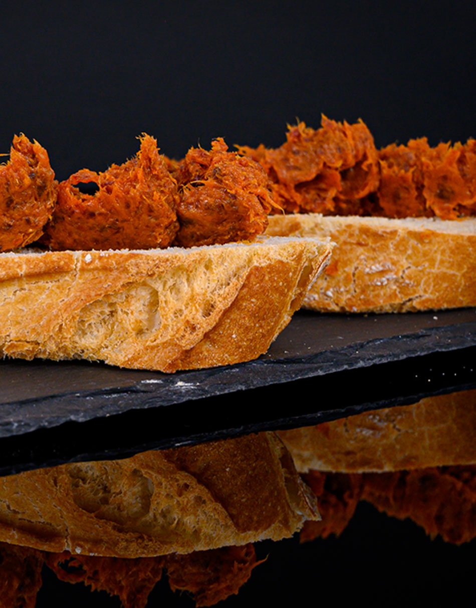 Chorizo Ibérico de Bellota micronizado que junto a la manteca forma una finísima crema ibérica que se funde en la boca aflorando todos los matices del chorizo ibérico. Presentado en tarrina de 180g para los gourmets más exigentes, que podrán disfrutar de una experiencia organoléptica excepcional y única.