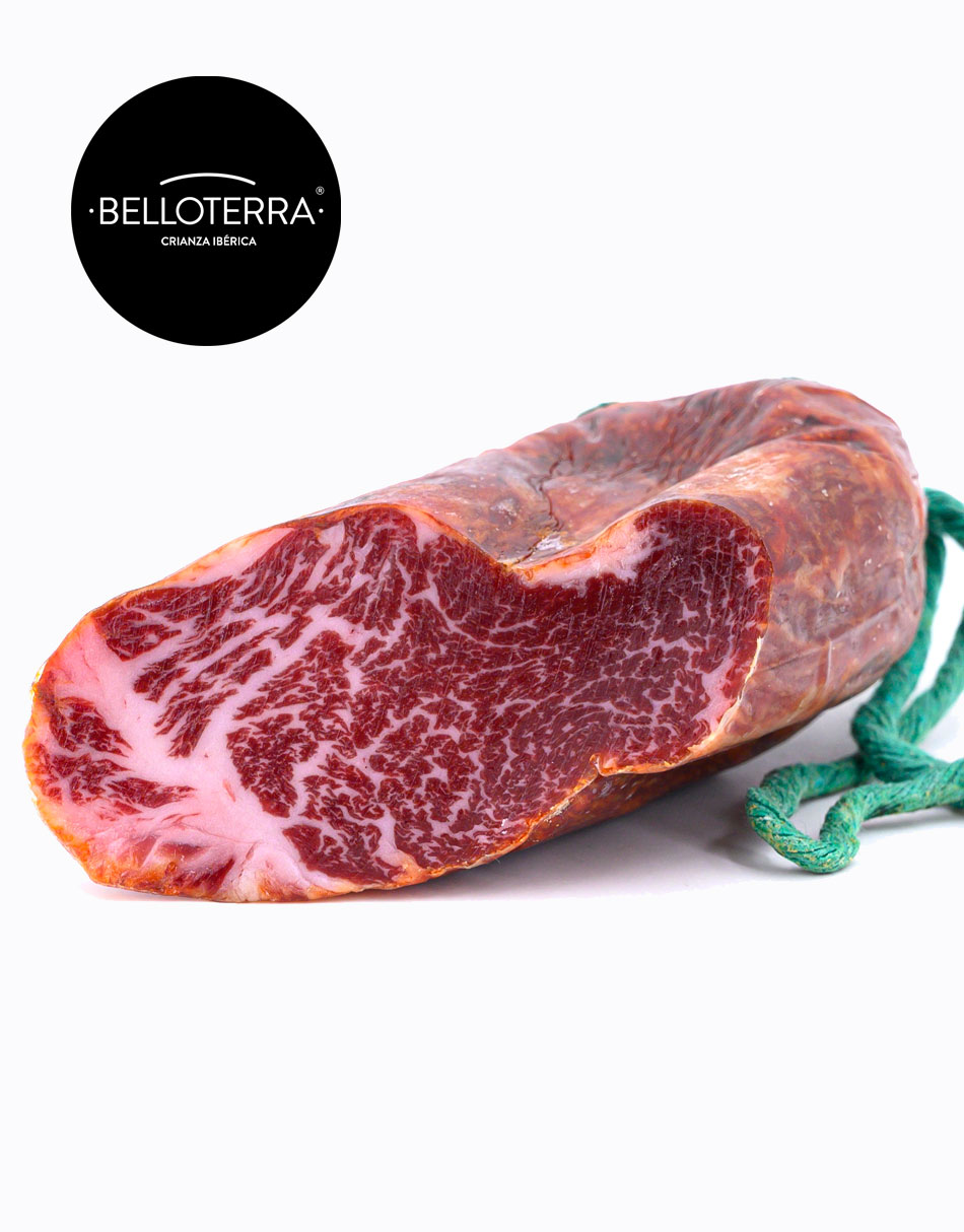 Exquisitez de alta gastronomía desde la dehesa de Los Pedroches. Elaborado a partir de presa de paletilla ibérica de bellota seleccionada de primera calidad y sometida a un periodo de curación necesario de forma natural en el secadero de Belloterra, este producto ibérico sorprende por su sabor a ibérico de bellota y aroma intenso.