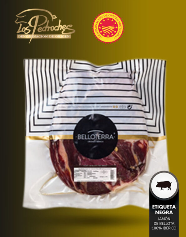 La Paleta Ibérica de Bellota DOP Los Pedroches de Belloterra, presenta un característico color que varía del rosa al rojo púrpura, brillante, con infiltración de grasa blanco-rosácea o amarillenta, rica en ácido oleico, que lo hace untuoso al tacto y le confiere su característico aspecto marmóreo, mejorando sus cualidades organolépticas.